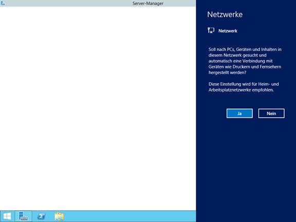 Nach dem Anmelden fallen mir allerdings direkt zwei Dinge auf, unten links wie für Microsoft Windows 8.1 auch angekündigt, der Startknopf. Und der Dialog der mich nach den Einstellungen zum Netzwerk fragt.