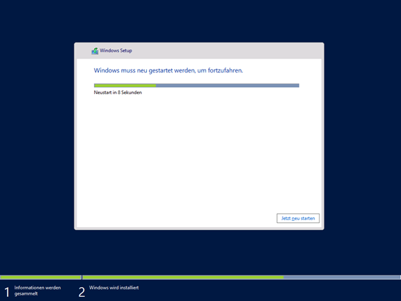 Die Installation ist abgeschlossen. Nach 15 Minuten auf meiner etwas beanspruchten Hyper-V 3.0 Workstation.