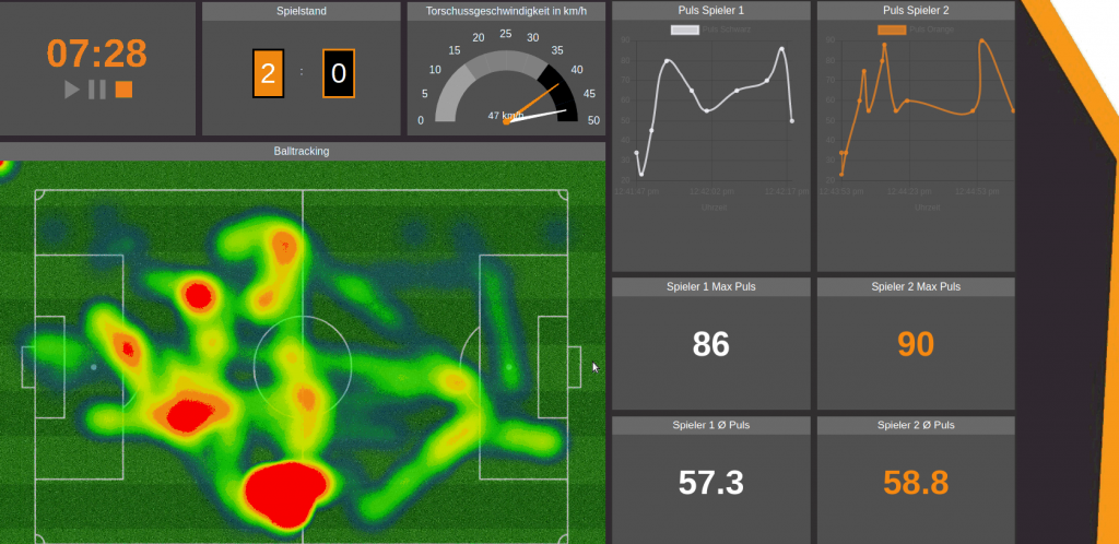 Alle gesammelten Daten werden in Echtzeit im Frontend Framework Angular visualisiert (siehe Abbildung 1 und 2).