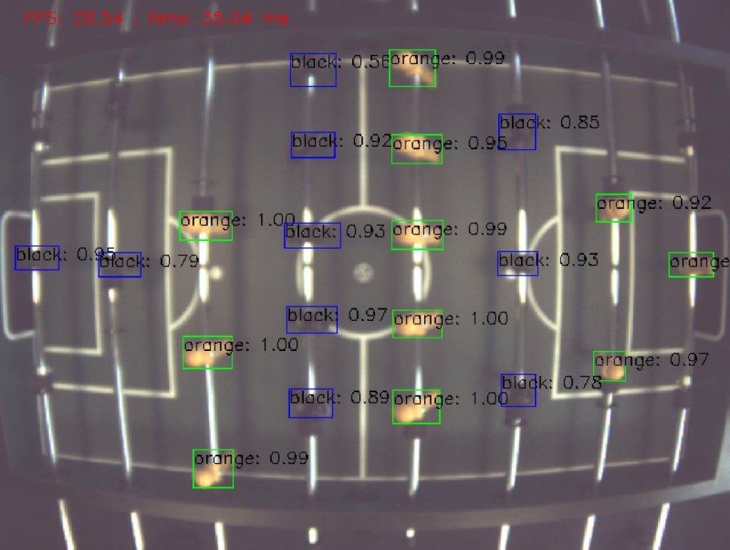 Zunächst konnte auch der Spielball nicht zuverlässig erkannt werden. Dadurch, dass in der Regel alle Spieler erfasst werden und durch Generierung weiterer Trainingsbilder, konnte bald auch der Ball erkannt werden. Außerdem wurde auch mit Bildern trainiert, die Hände über dem Spielfeld beinhalten, da Finger zunächst als Spielfiguren erkannt wurden.