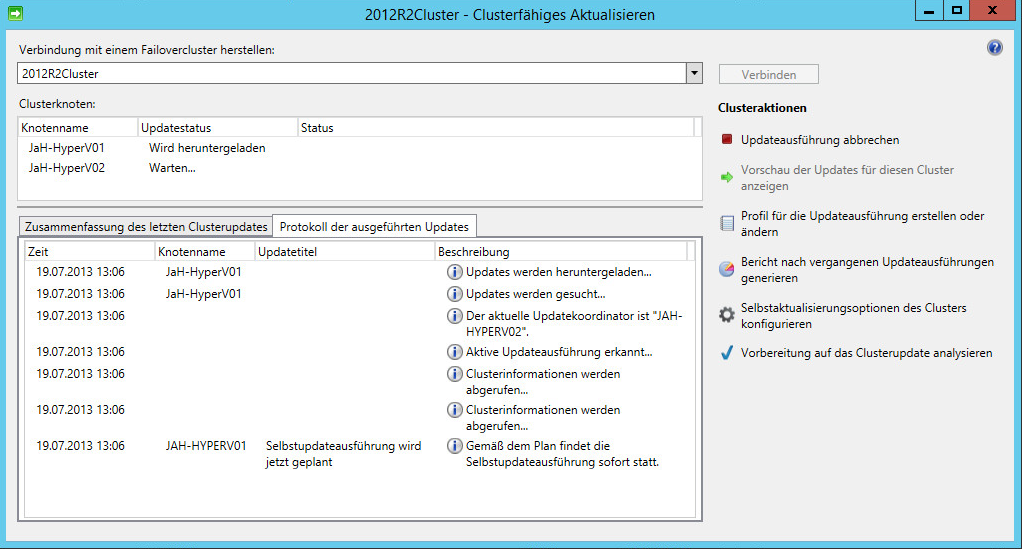 Somit wird nach und nach jeder einzelne Clusterknoten aktualisiert ohne dass eine Einschränkung für die Dienste entsteht.