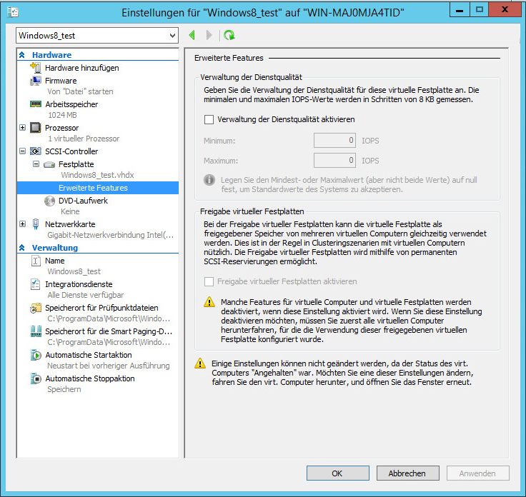 Eine weitere Neuerung ist die, dass man jetzt VHDX Dateien während dem Betrieb vergrößern und verkleinern kann. Bisher war nur die Verkleinerung einer VHDX Datei möglich und das auch nur, wenn sie einen unpartitionierten Bereich enthielt.